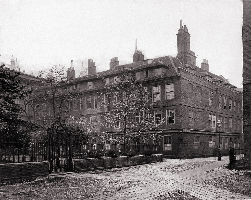 Ownership of the freehold passed in 1618 from the Clifford family to the Inn itself, though retaining the name Clifford’s Inn. The coat of arms of the Clifford family continued to be used by the Inn and today are still displayed outside. The primary access to the Inn was then from Fleet Street through Clifford’s Inn Passage, though with exits both to Fetter Lane and Chancery Lane. Residents endured the Great Plague of 1665, but in the following year Clifford’s Inn was just outside the area destroyed by the Great Fire of 1666 and escaped unscathed. Subsequent to the Great Fire it served as the location of the court settling the hundreds of post-fire City land disputes.
