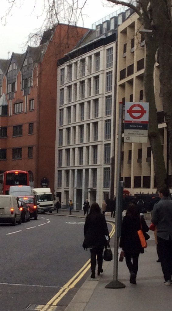 The Fetter Lane façade was replaced in 2014, the new one designed by Gibberd Architects, and clad in Portland stone and Carrara marble.